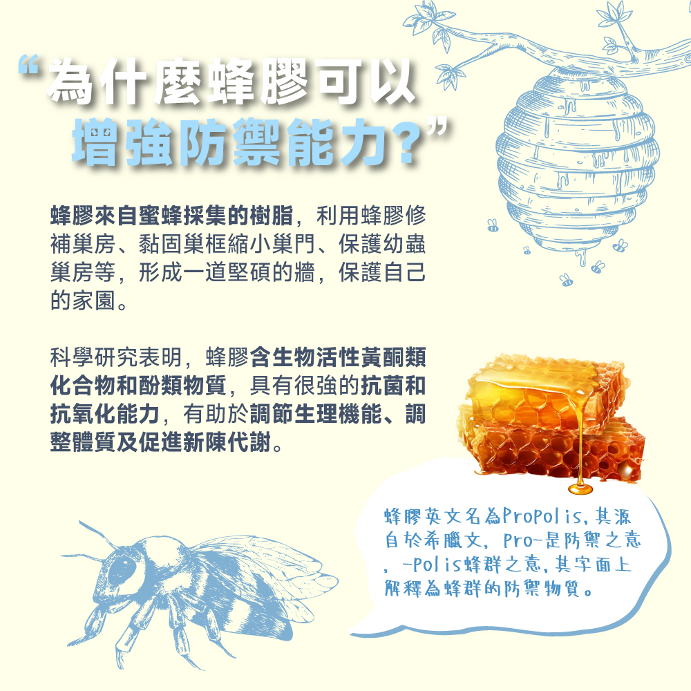 蜂膠萃取精華形成天然防護力量。