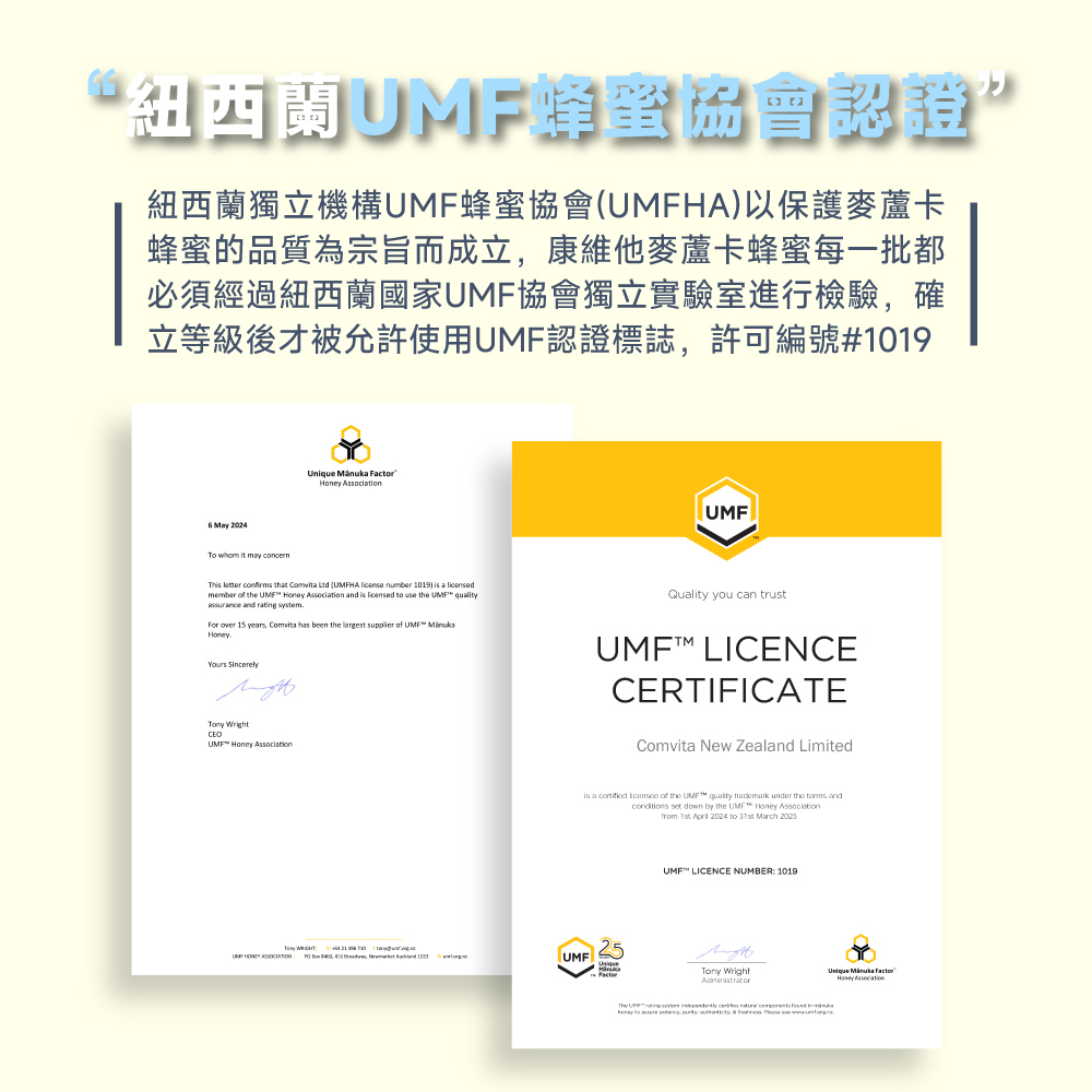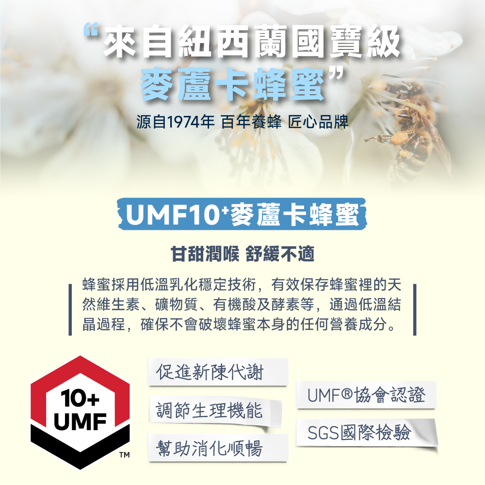 添加UMF10+麥蘆卡蜂蜜潤喉、增強體力