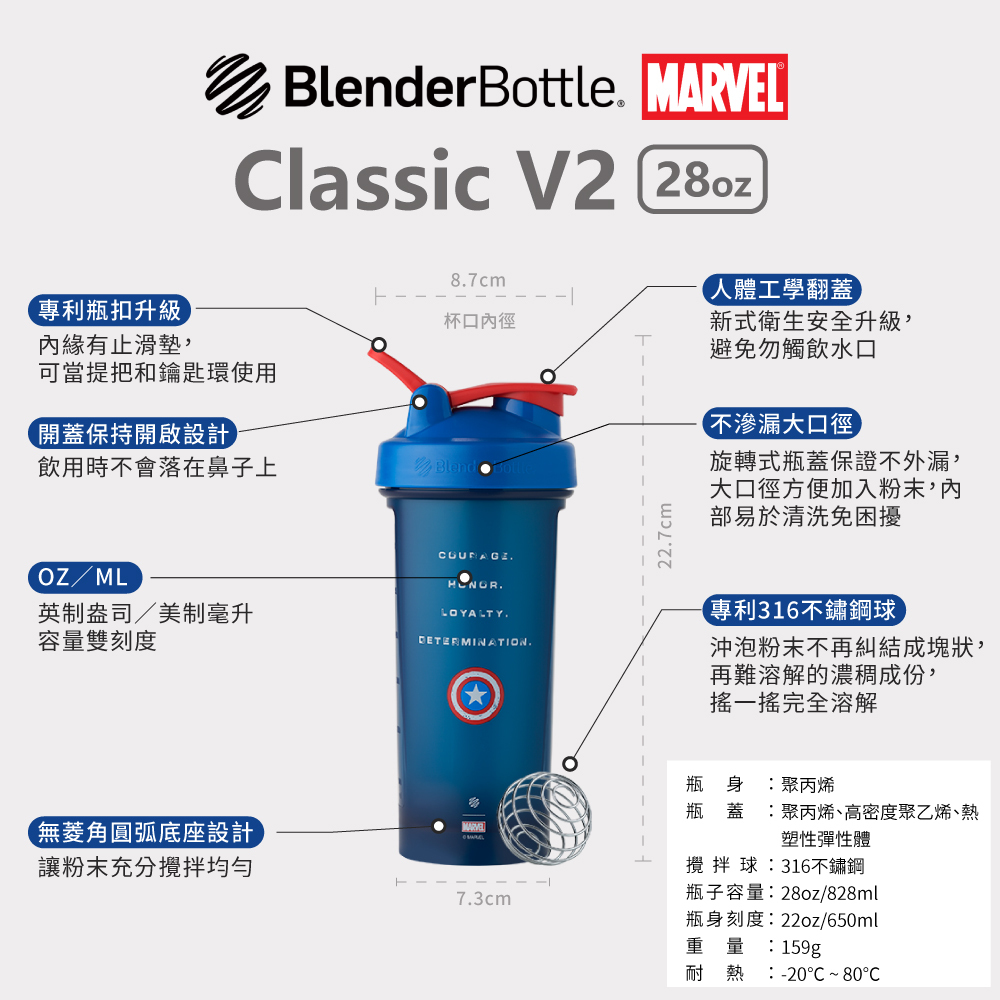 【Marvel】BlenderBottle®Classic V2|28oz 搖搖杯|美國隊長