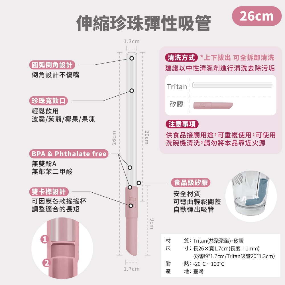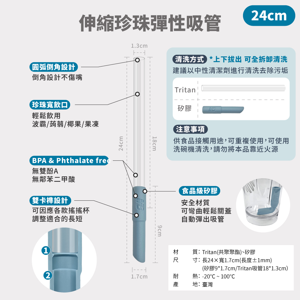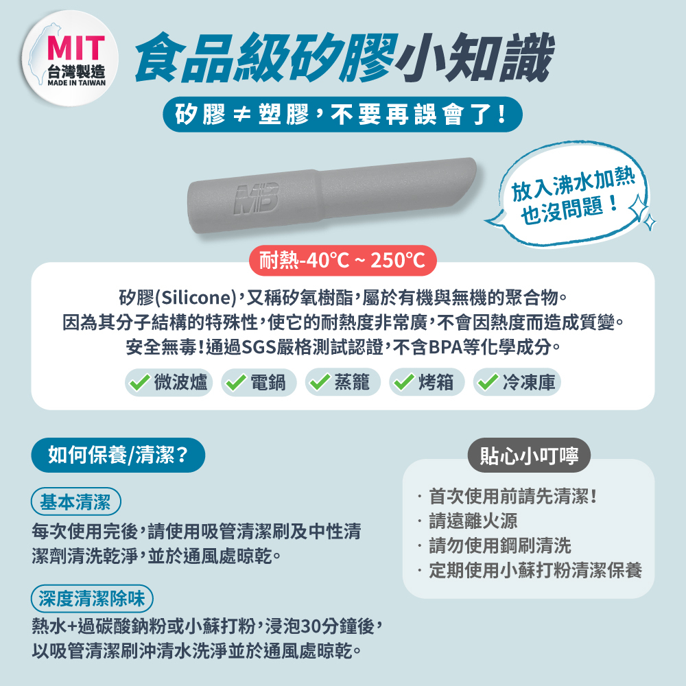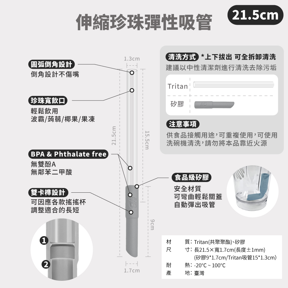 ● 食品級矽膠×Tritan吸管