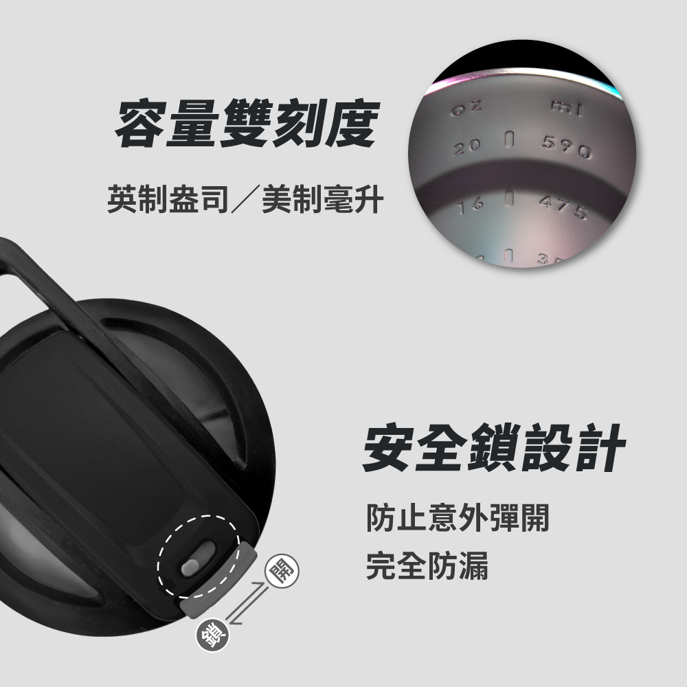 • 刻度容量:20oz/590ml