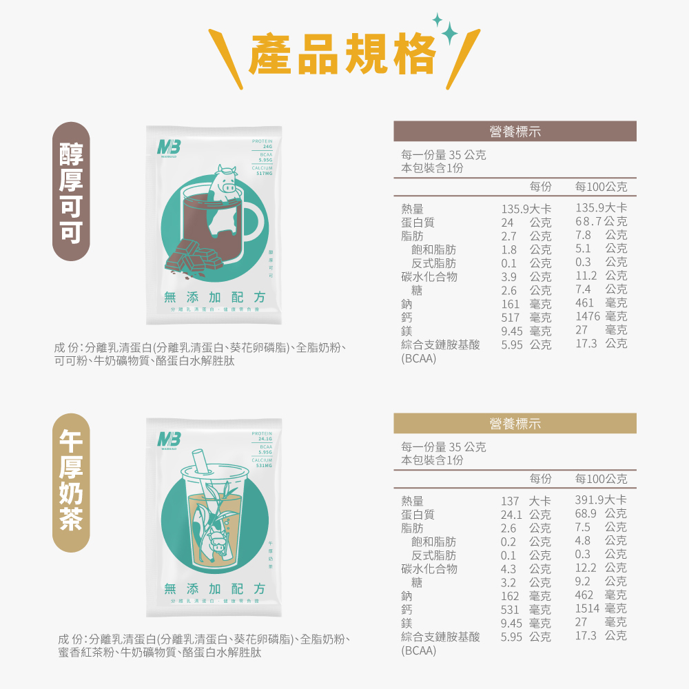 ◆規格:每份24-24.1g蛋白質 / 5.95克BCAA