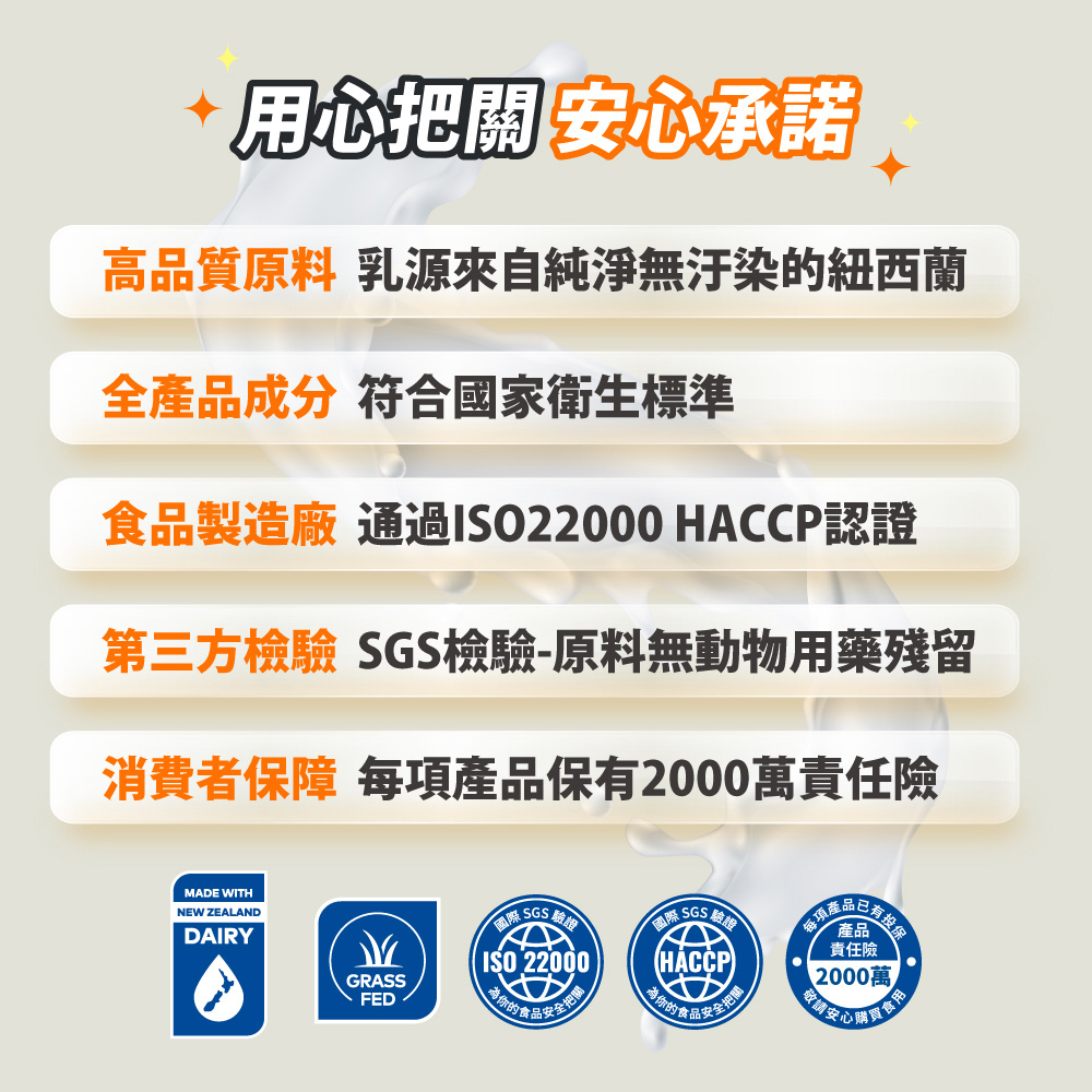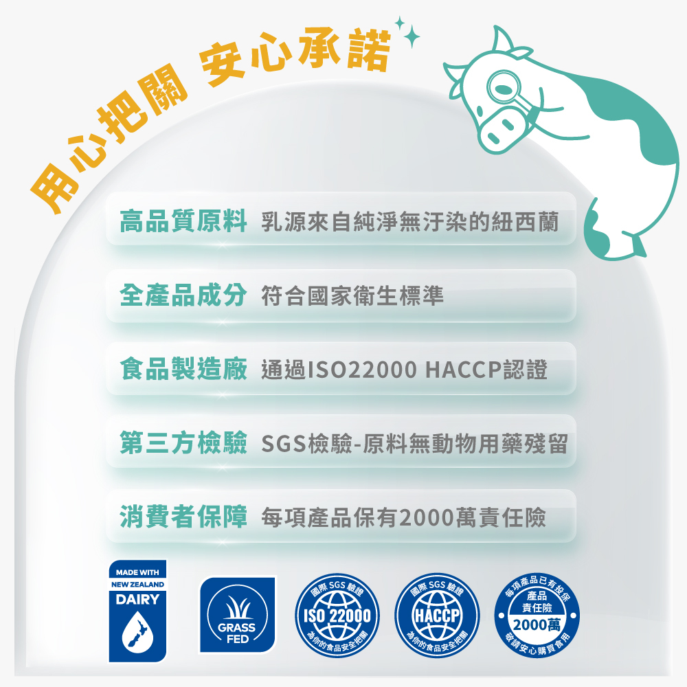 ※ 新鮮牛奶提取紐西蘭乳礦物鹽,每份含量≥477毫克 鈣