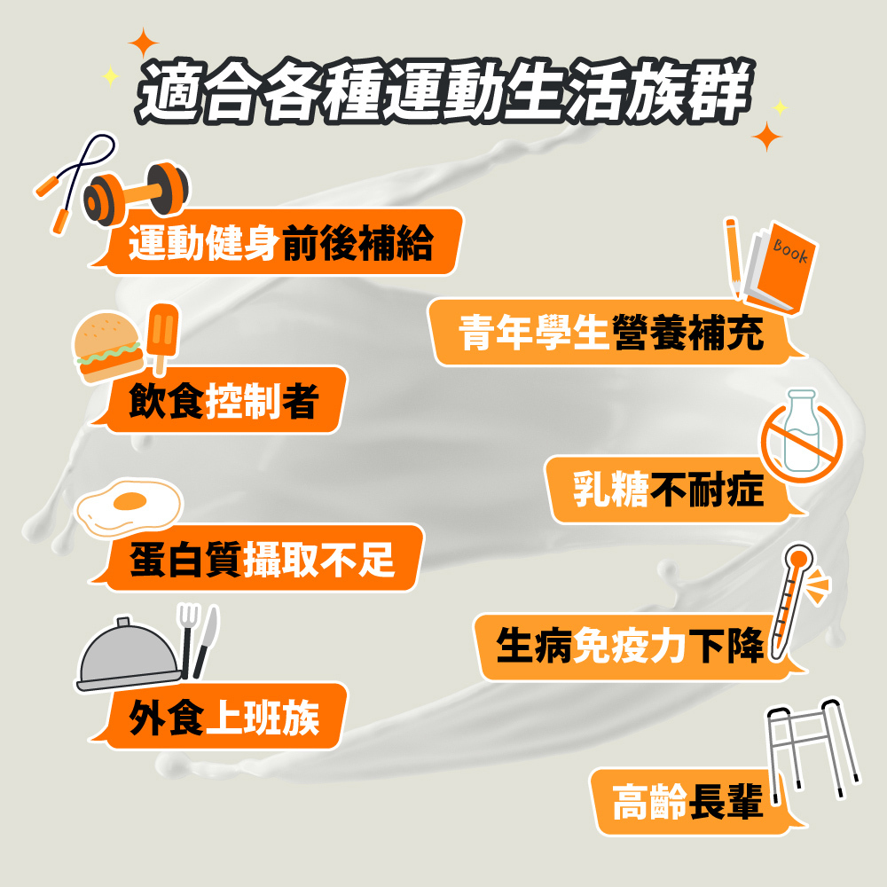 ※ 針對亞洲人的體質與口味調配出適合國人的蛋白質營養補充品。